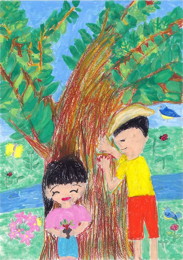 山梨大学教育学部附属小学校 1年 雨宮 聖華 国土緑化運動・育樹ポスター原画コンクール 入選・国土緑化推進機構理事長賞