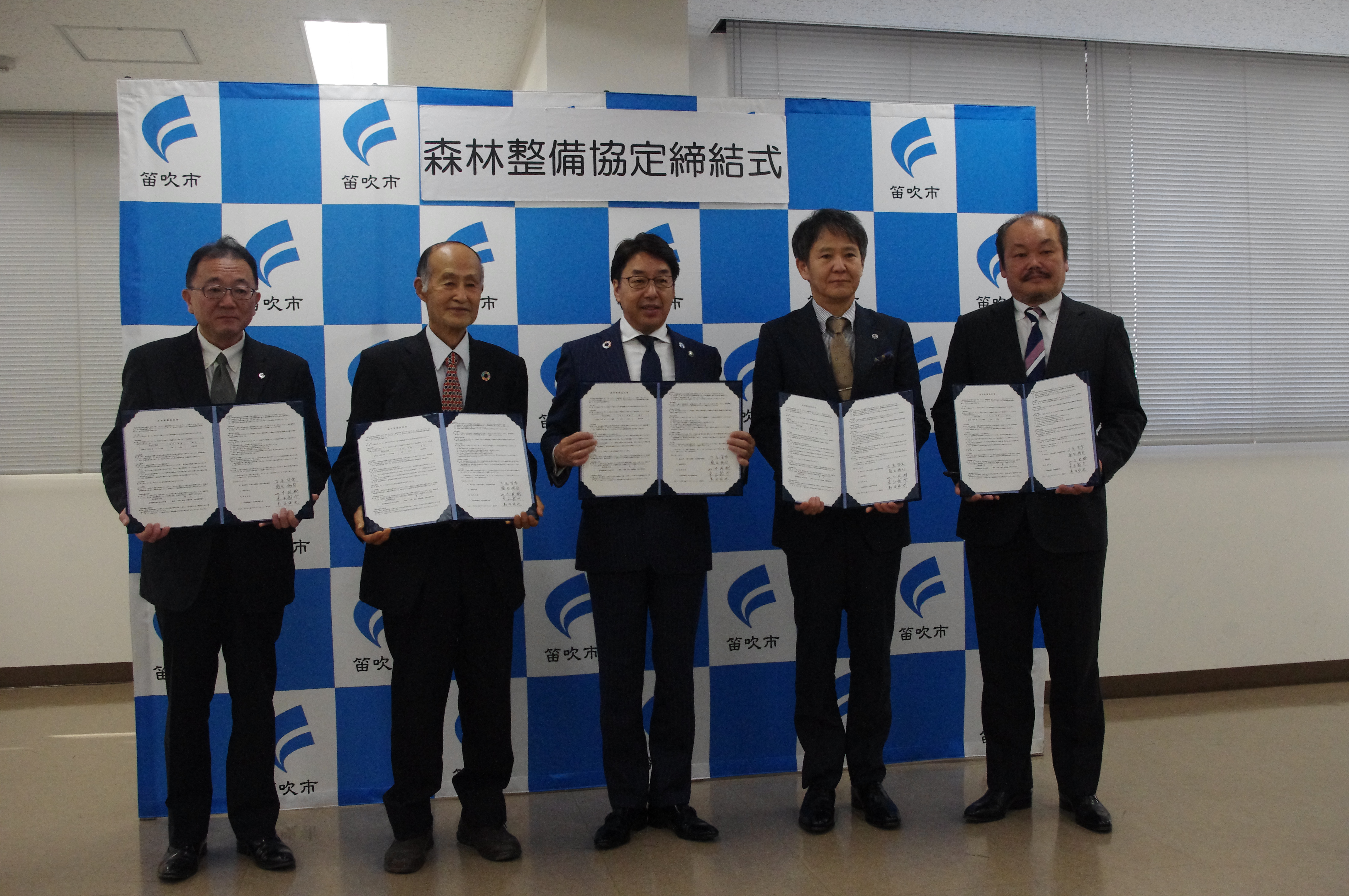 当コミッションでは、株式会社山梨中央銀行(甲府市丸の内)が笛吹市で行う森林整備ついて、関係者との調整を行い、このほど、森林整備の内容・活動エリア等について、協議が整い、12月7日に森林整備の協定締結式を笛吹市役所において実施しました。